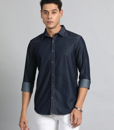Men’s Dark Blue Denim Shirt for Men