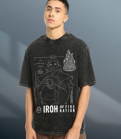 Men’s Black Uncle Iroh Graphic Printed Acid Wash T-shirt