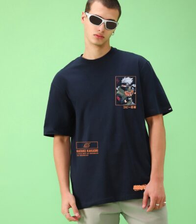 Men’s Blue Printed Oversized T-shirt