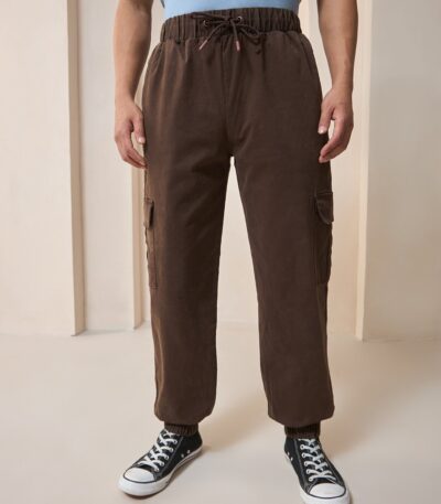 Men’s Brown Oversized Cargo Jogger Pants