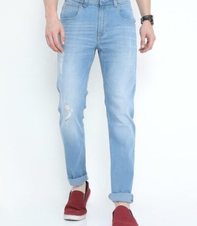 Men’s Blue Washed Slim Fit Distressed Jeans